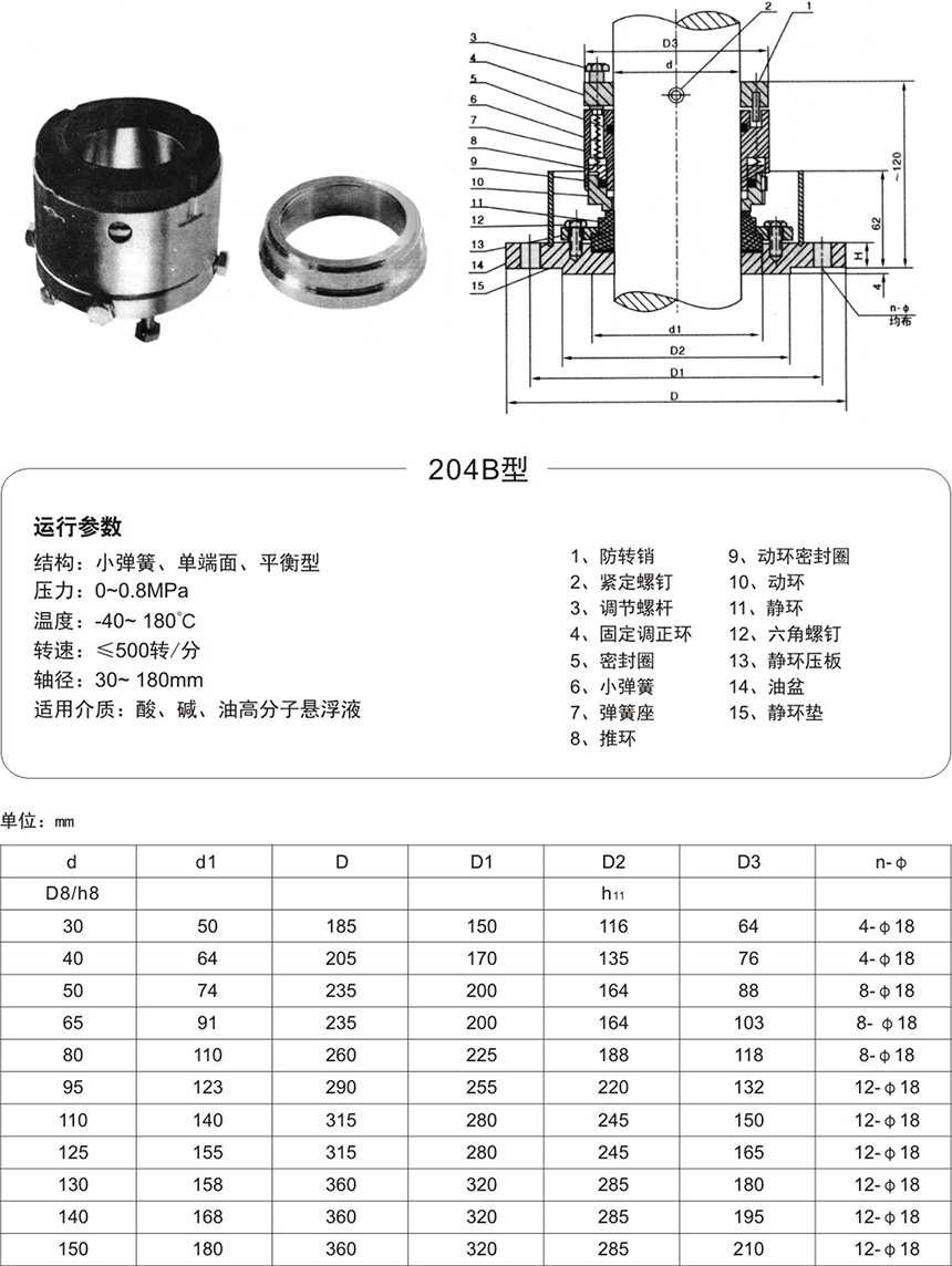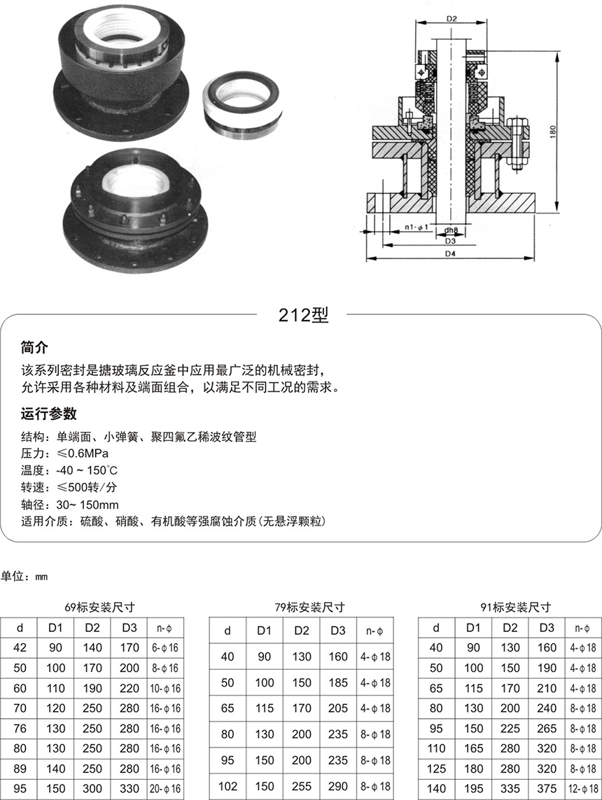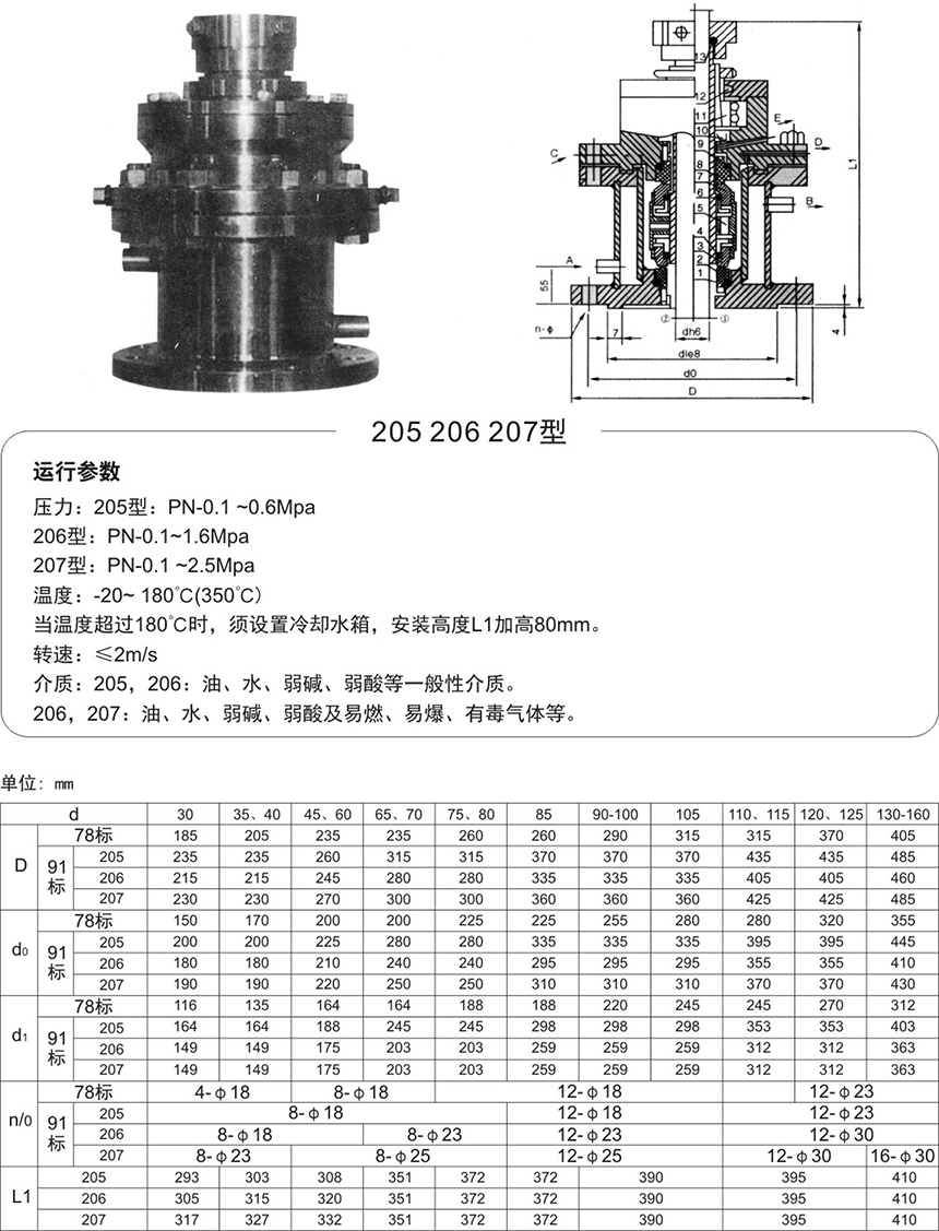 為改善授拌軸支承穩(wěn)定性,降低密封腔的工作溫度,提高使用性能,可根據(jù)攪拌軸直徑d及對應的標準系列,選用對應的CT調(diào)溫器可與機封做成一體。安裝尺寸與對應的機械密封一致。