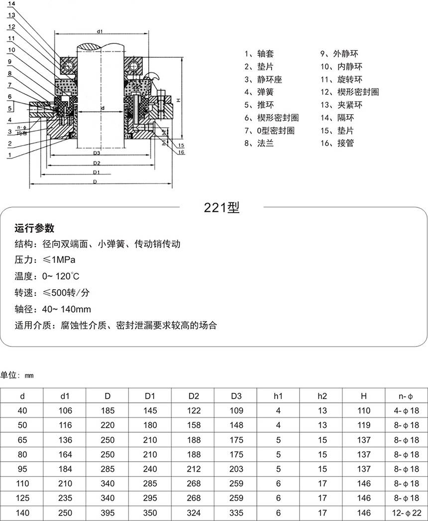 (1)安裝前先檢查軸的軸向竄動不大于0.5mm,徑向擺動不大于0.5m。安裝機械密封的法蘭與軸線不垂直度不大于0.05m,安裝機械密封部位的軸公差為h8,光潔度為3.2。